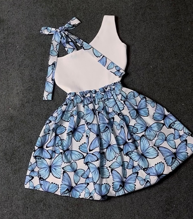 ست تاپ دامن رومی پروانه آبی پینترستی لباس زنانه مناسب تولد